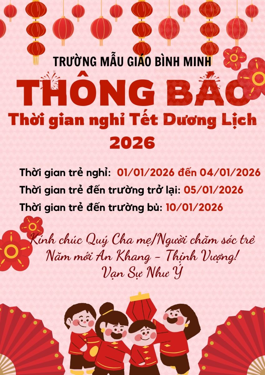 Trường MG Bình Minh Thông báo Nghỉ Tết Dương lịch năm 2026