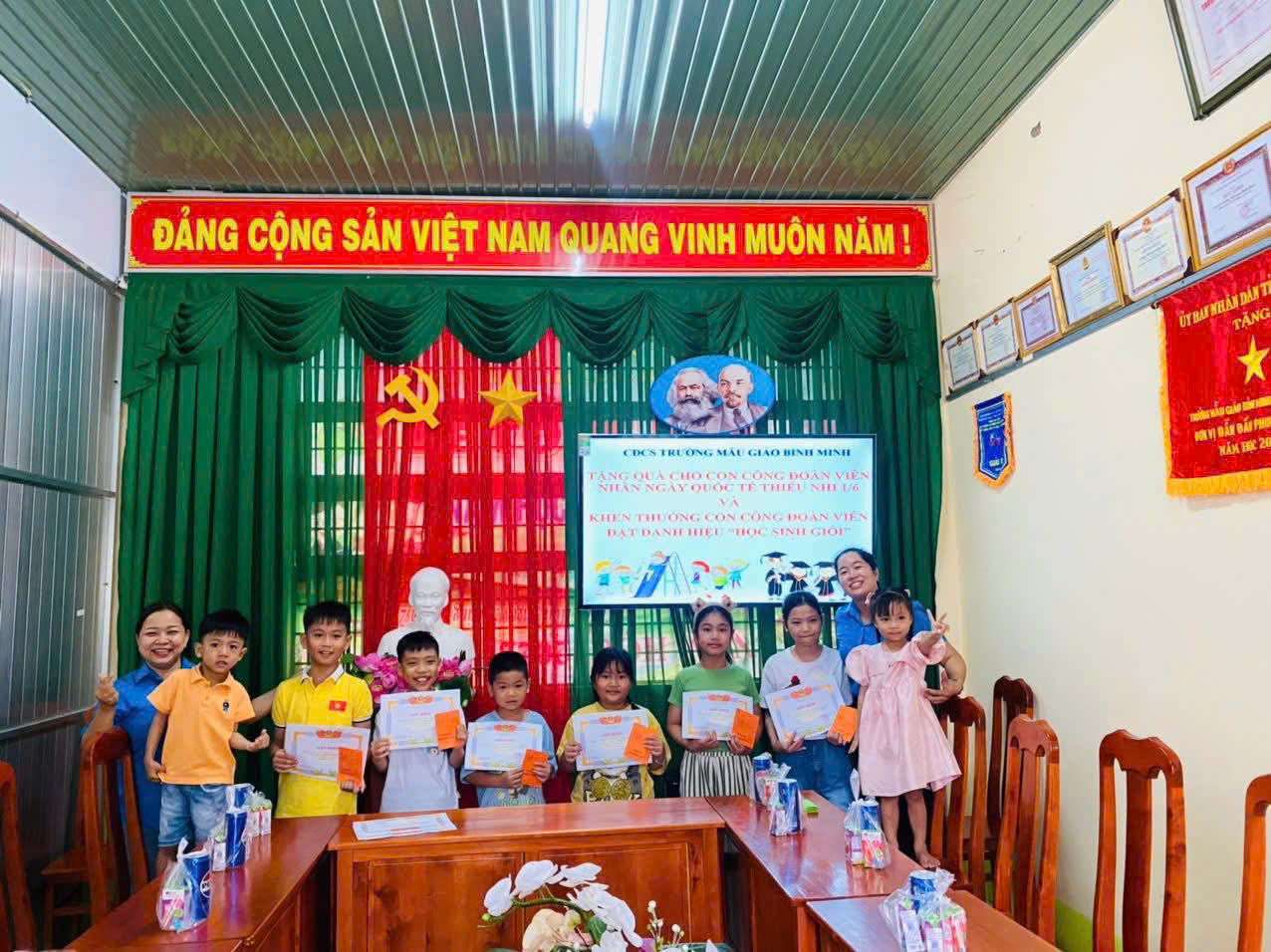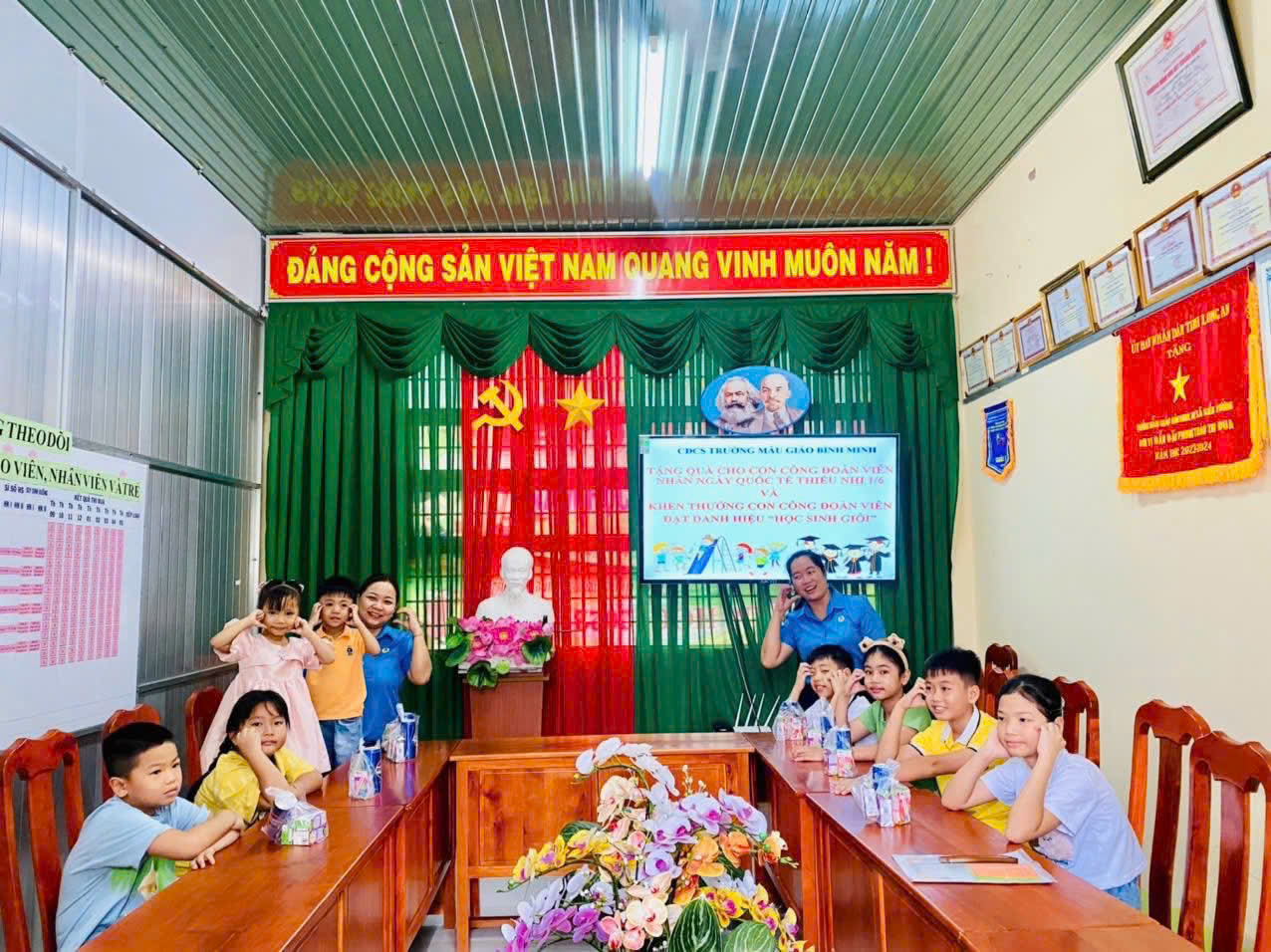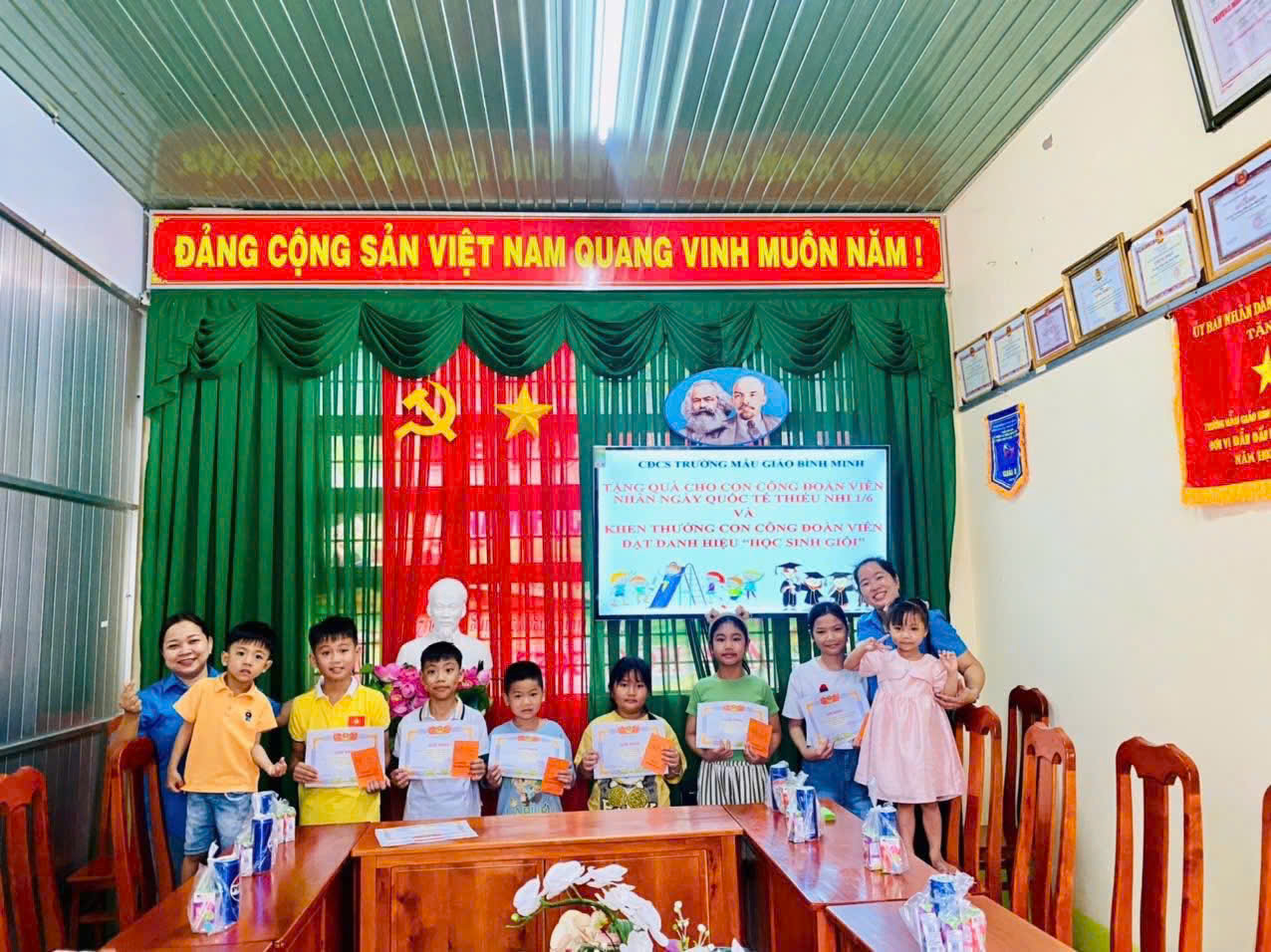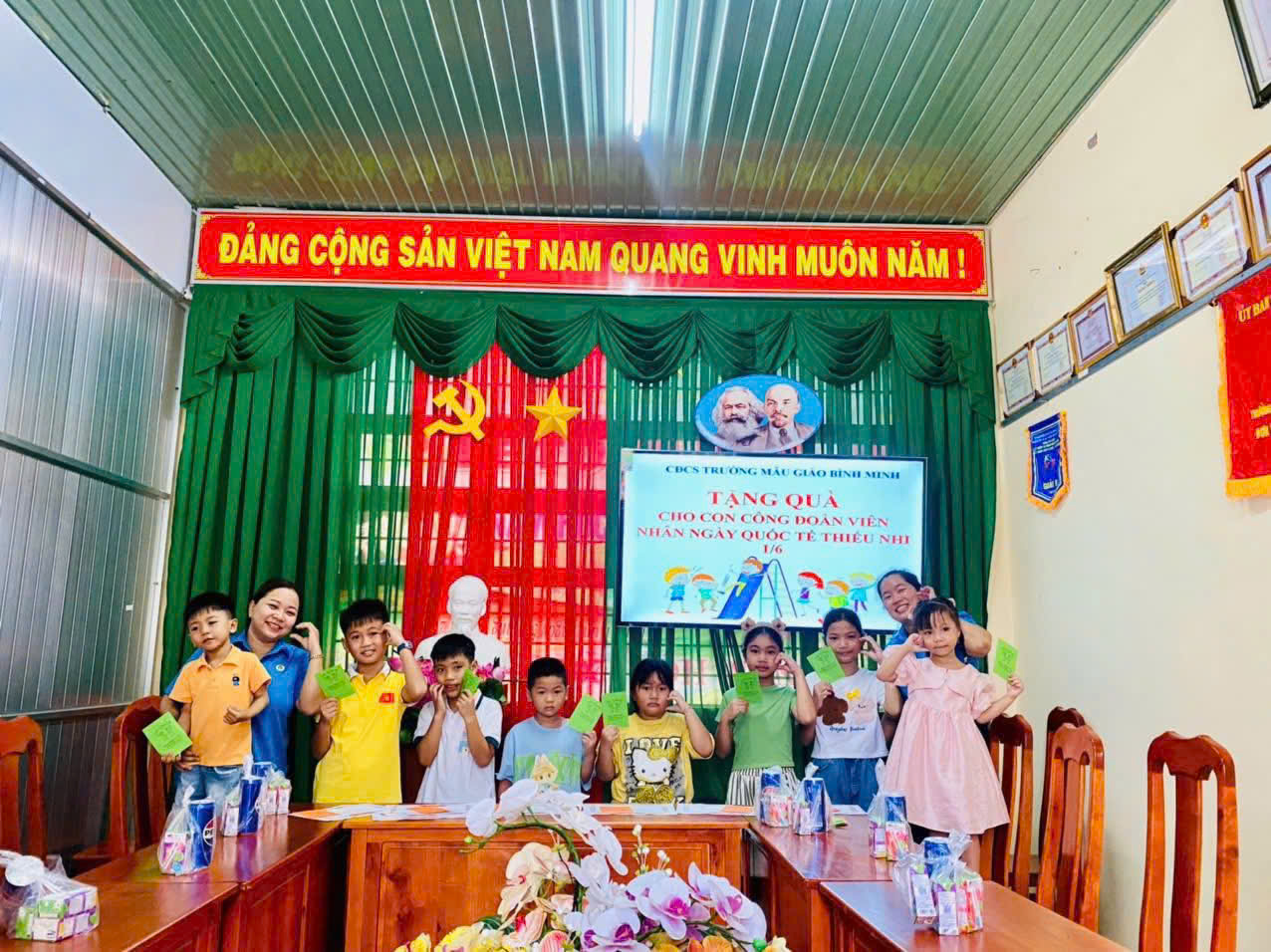 Nhân dịp ngày Quốc tế Thiếu nhi 1/6, Trường Mẫu giáo Bình Minh đã tổ chức chương trình vui chơi – tặng quà đầy ý nghĩa dành cho các cháu là con của cán bộ, giáo viên, nhân viên (CBGVNV) đang công tác tại trường. Đây là hoạt động thường niên thể hiện sự quan tâm, động viên tinh thần của nhà trường đối với các gia đình trong tập thể sư phạm.